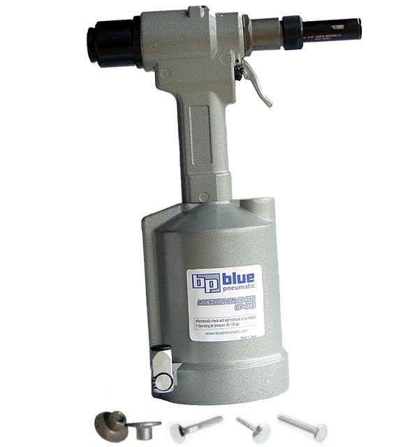The BP-82E Lockbolt All-In-One installs Huck and Avdel Lockbolts. This tool uses 5500 lbs. of pulling force to install Magnagrip and Maxlok pin and collar fasteners. The BP-82E sets 3/16 and 1/4 lockbolts, which includes Huck C6L and Magnagrip and Avdel Cherry Texron Avdelok and Maxlok. This Huck tool converts to pull 3/16 and 1/4 blind rivets. The generous 7/8 stroke sets up to 1/4 structural rivets, many in just one stroke.